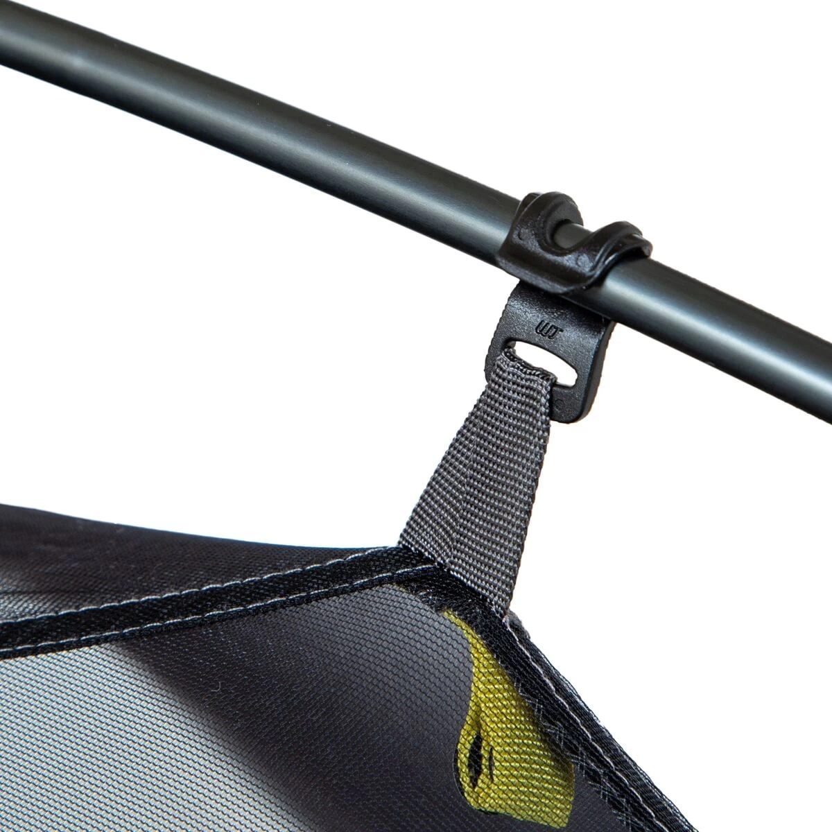 - Pre-bent aluminum poles with crossbar for extra interior space