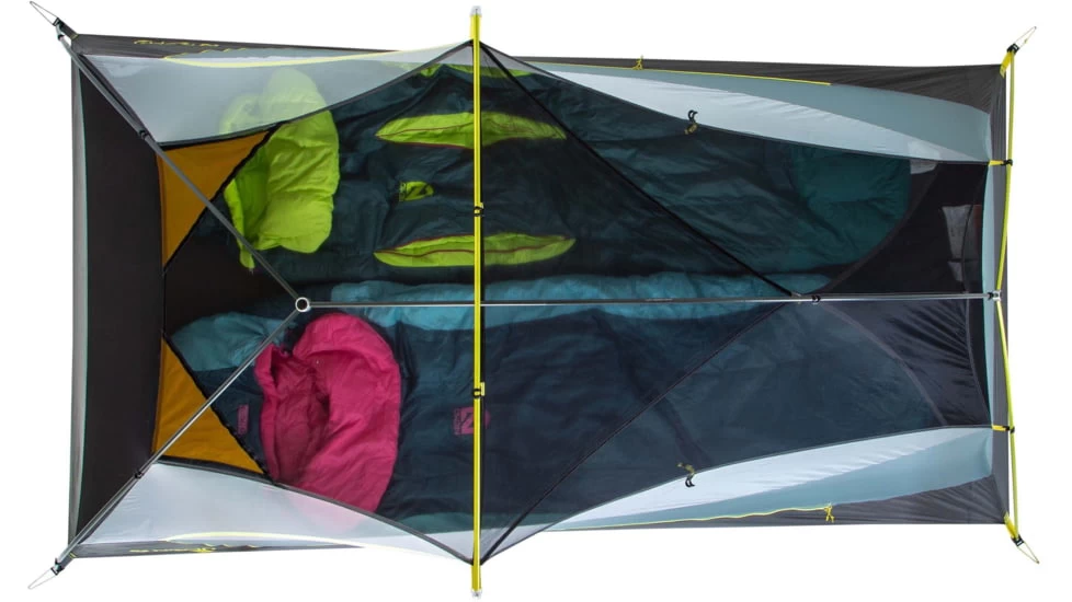Dragonfly OSMO features generously sized doors and asymmetrical vestibules for easy entry and access to bulkier gear. Inside, a gear loft and gear pockets keep belongings neatly stored and out of the way, while an overhead Nightlight Pocket casts headlamp light with a warm, even glow. Best-in-class, durable Y stakes and Jakes Foot pole clips are included to make the pitching process even smoother and more secure. The updated Divvy Cube stuff sack allows for easily splitting the weight with a partner and stows more efficiently in your pack.