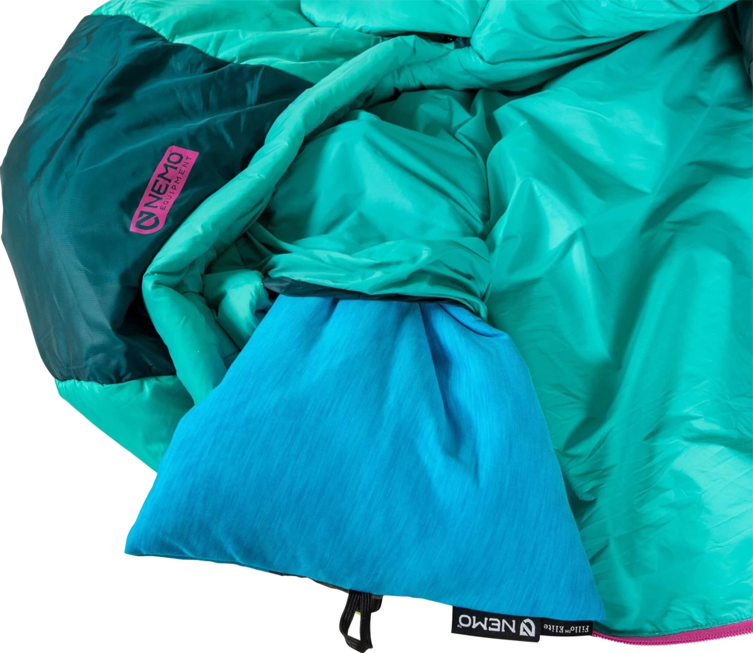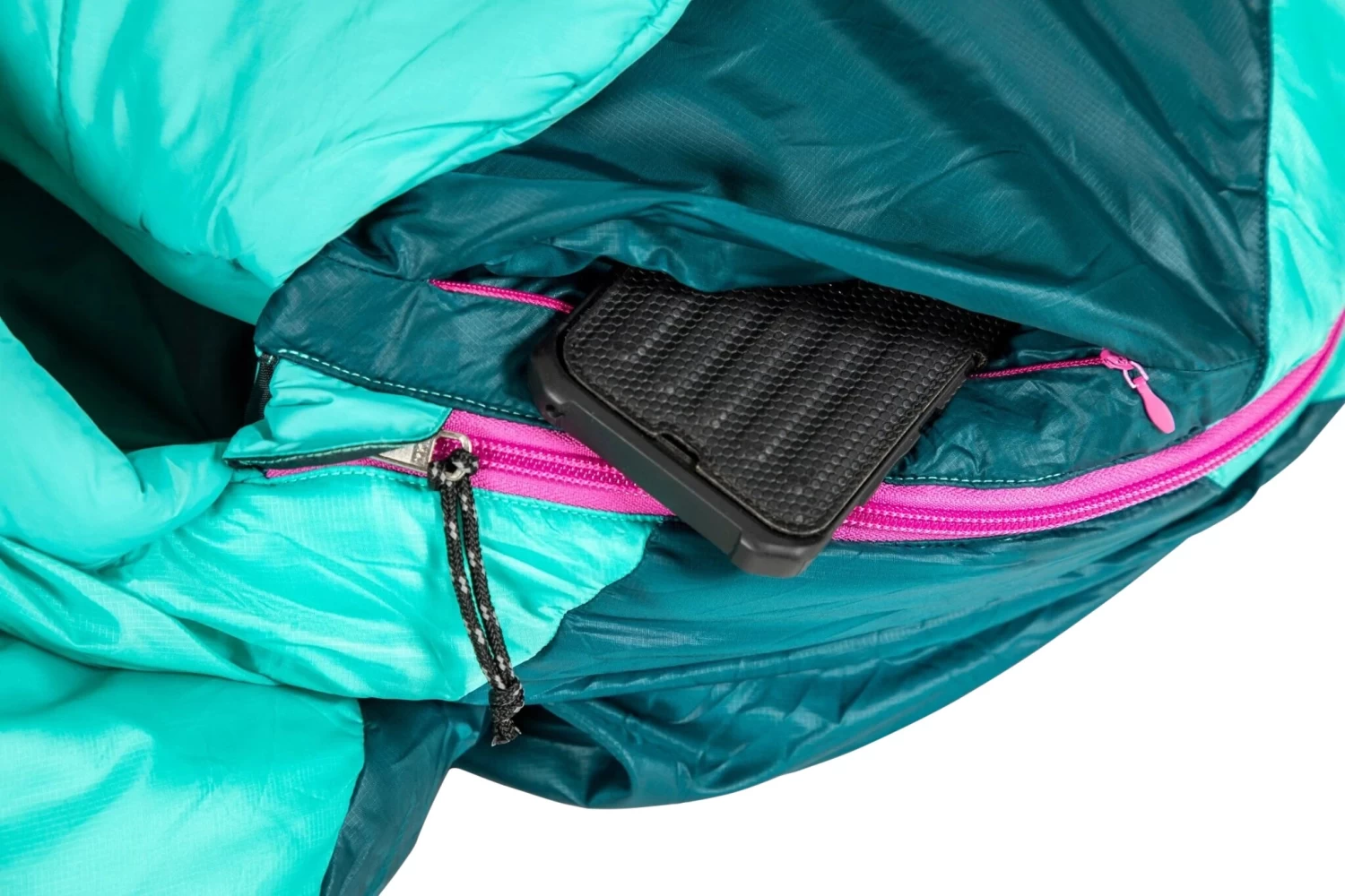 • Opposite-sided zippers on Forte men’s and women’s models increase versatility by allowing them to be zipped together into a double sleeping bag