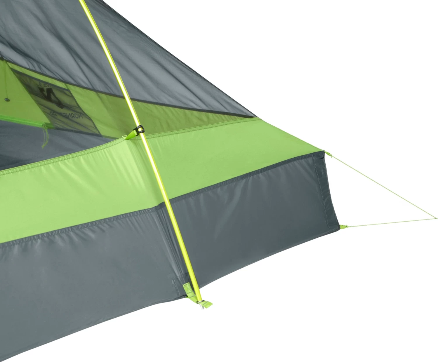|-|La tente Hornet™ est si légère et si compacte que vous l’emmènerez partout pour profiter d’un grand confort en toutes circonstances. Cette année, nous avons agrandi de 10 % l’espace intérieur grâce à l’ajout de crochets gain d’espace Flybar™. Son armature à arceau unique, ses coupes droites au niveau des pieds et ses crochets haut de gamme font de la Hornet™ la tente 2 places (avec 2 entrées + 2 absides) de moins d’1 kg la plus convoitée du marché.