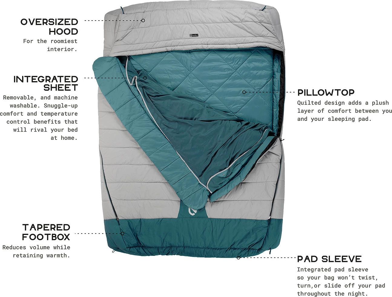 The integrated pad sleeve keeps your sleeping pad securely in place no matter how much you twist or turn at night. And when you pack it up, you can keep the sleeping pad in place and roll them up together for ultimate convenience. Tapered geometry at the head and foot reduce excess volume inside so your bag stay cozier, even while remaining roomy.