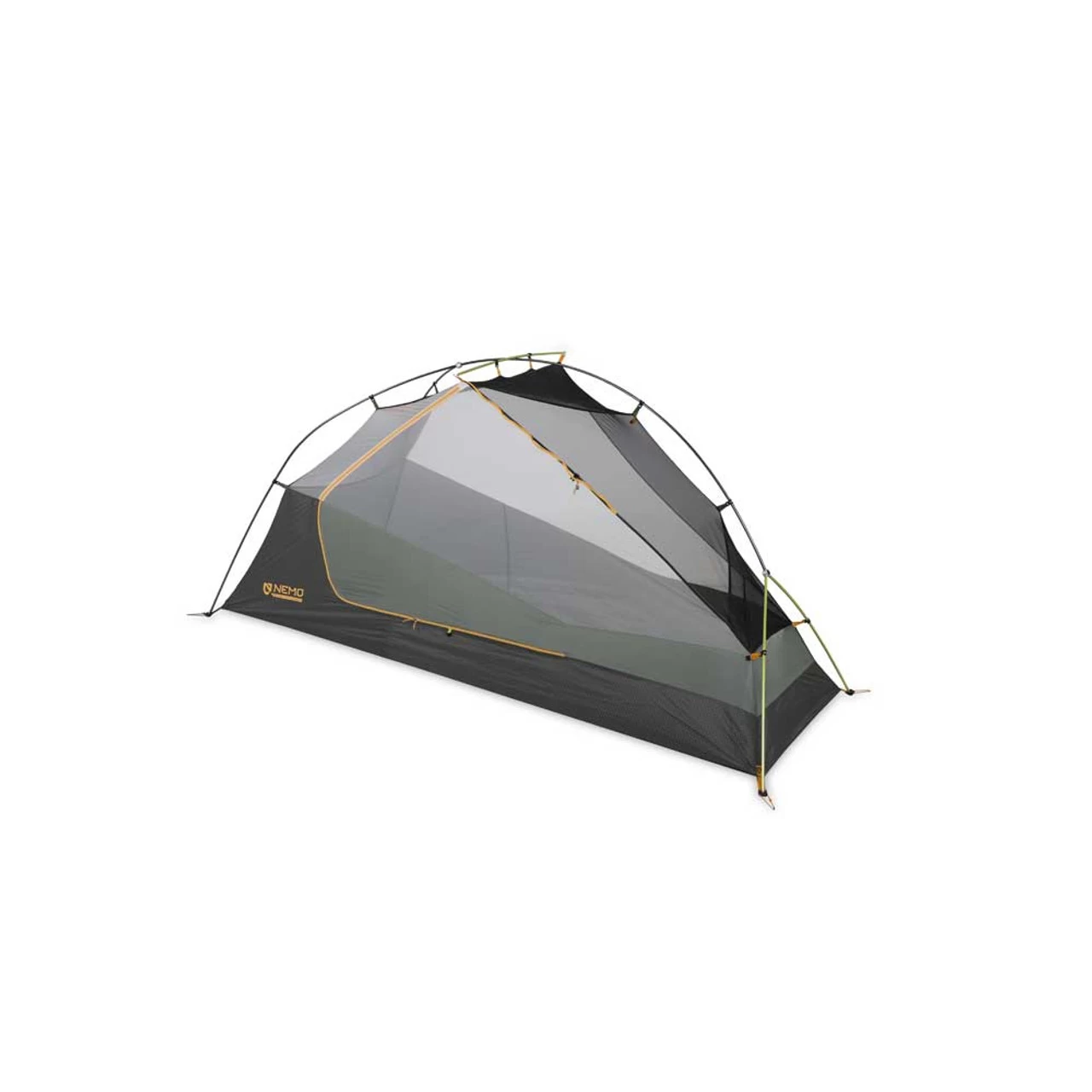 The Dragonfly Bikepack OSMO 1P Tent packs down to securely fit most bikes’ handlebars, and NEMO redesigned it this year with burlier weather protection that’s 100% recycled. Its OSMO fly has been lab-tested to provide 4x greater water-resistance and 3x less stretch so it doesn’t sag over the mesh canopy after a full night of rain. NEMO outfitted the canopy with attachments and stash pockets for sweaty gear that needs to dry off before tomorrow’s ride. The Dragonfly Bikepack and the original Dragonfly have the same floor dimensions, but the Dragonfly Bikepack is a bit more narrow around the head and toe areas for better packability.