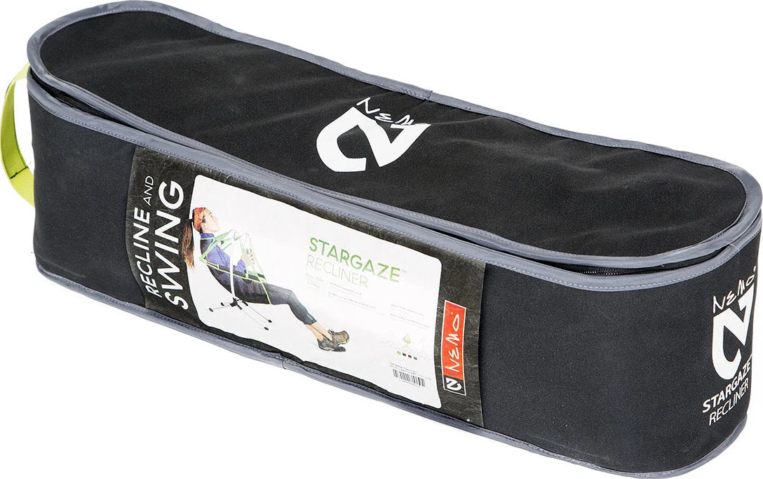 • Includes padded carrying case with interior storage pocket for easy portability.|-|La première chaise de camp inclinable et berçante Le mouvement de balancement du Stargaze ™ Recliner est conçu pour un confort ultime, et vous pouvez trouver la position inclinée parfaite simplement en vous penchant en arrière.