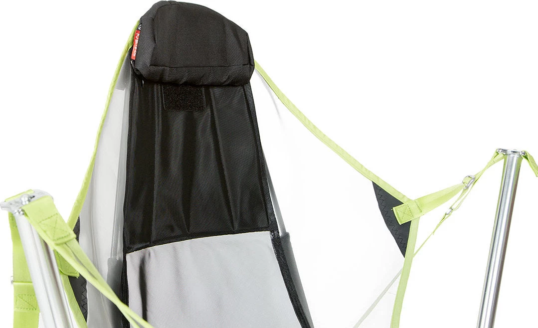• Le cadre de suspension en aluminium de qualité aéronautique est plus robuste que la plupart des fauteuils de camping, mais il se plie encore rapidement et de manière compacte.