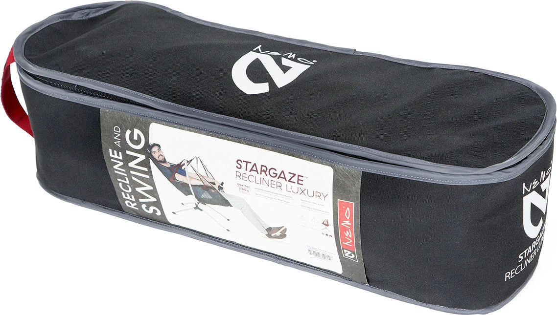 • Includes padded carrying case with interior storage pocket for easy portability.|-|Stargaze ™ Recliner est la toute première chaise de camp inclinable et inclinable ! Son mouvement d’oscillation est conçu pour le confort final, et vous pouvez trouver la position couchĂ©e parfaite simplement en se penchant en arrière.