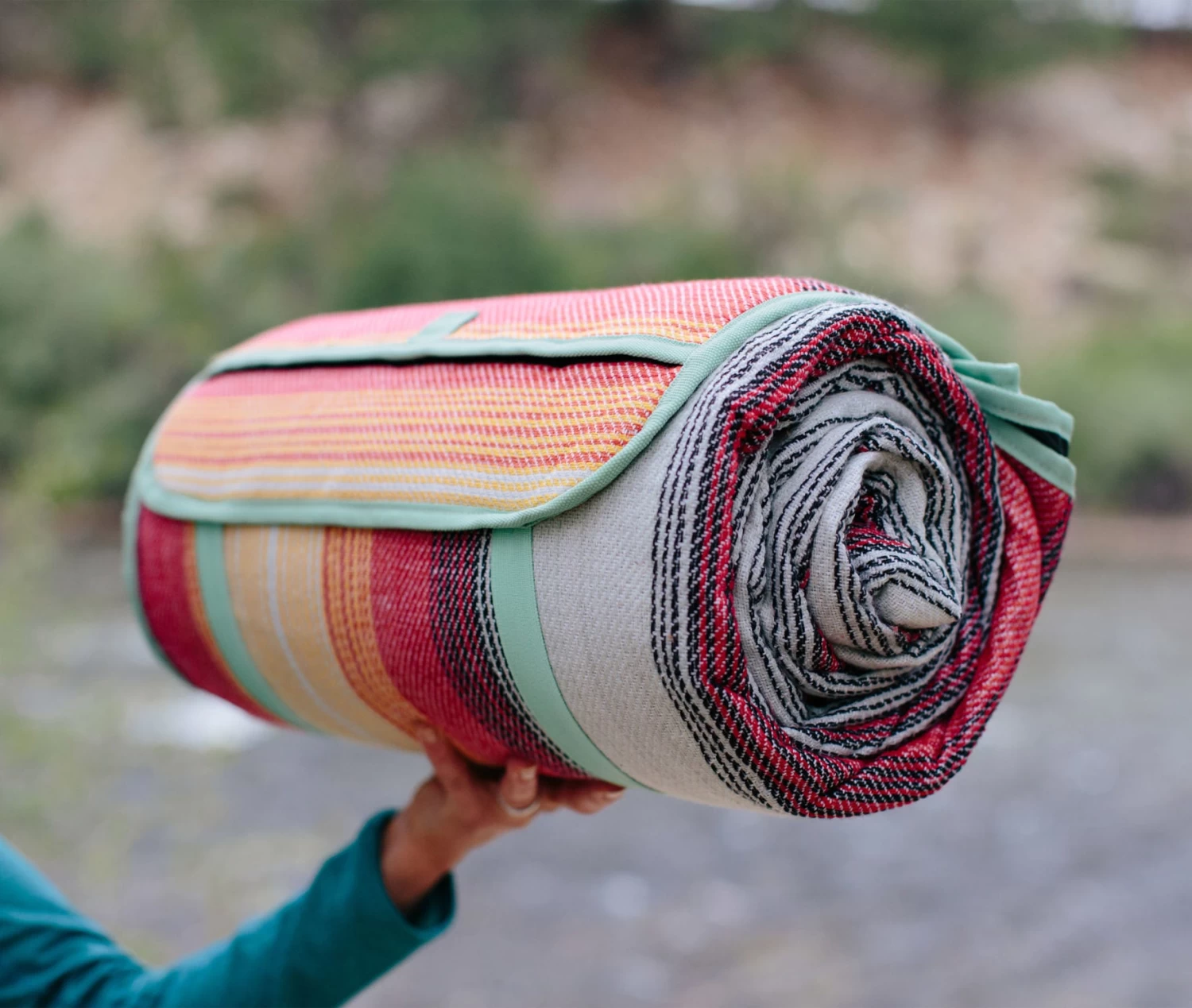 The go-anywhere Victory™ Blanket is the ideal companion for everything from beach days to picnics, concerts, camping, and backyards. Updated in 2019 with a fresh new Southwest-inspired pattern, Victory™ keeps it real … and you should keep it rolled and stashed in your trunk. When camping, it fits perfectly into Wagontop™; when beaching it pairs exactly with Victory™ Sunshade, and when used as a blanket in its own rite, the soft flannel top, waterproof bottom and stealth stash pocket will make it the best blanket you’ve ever owned.